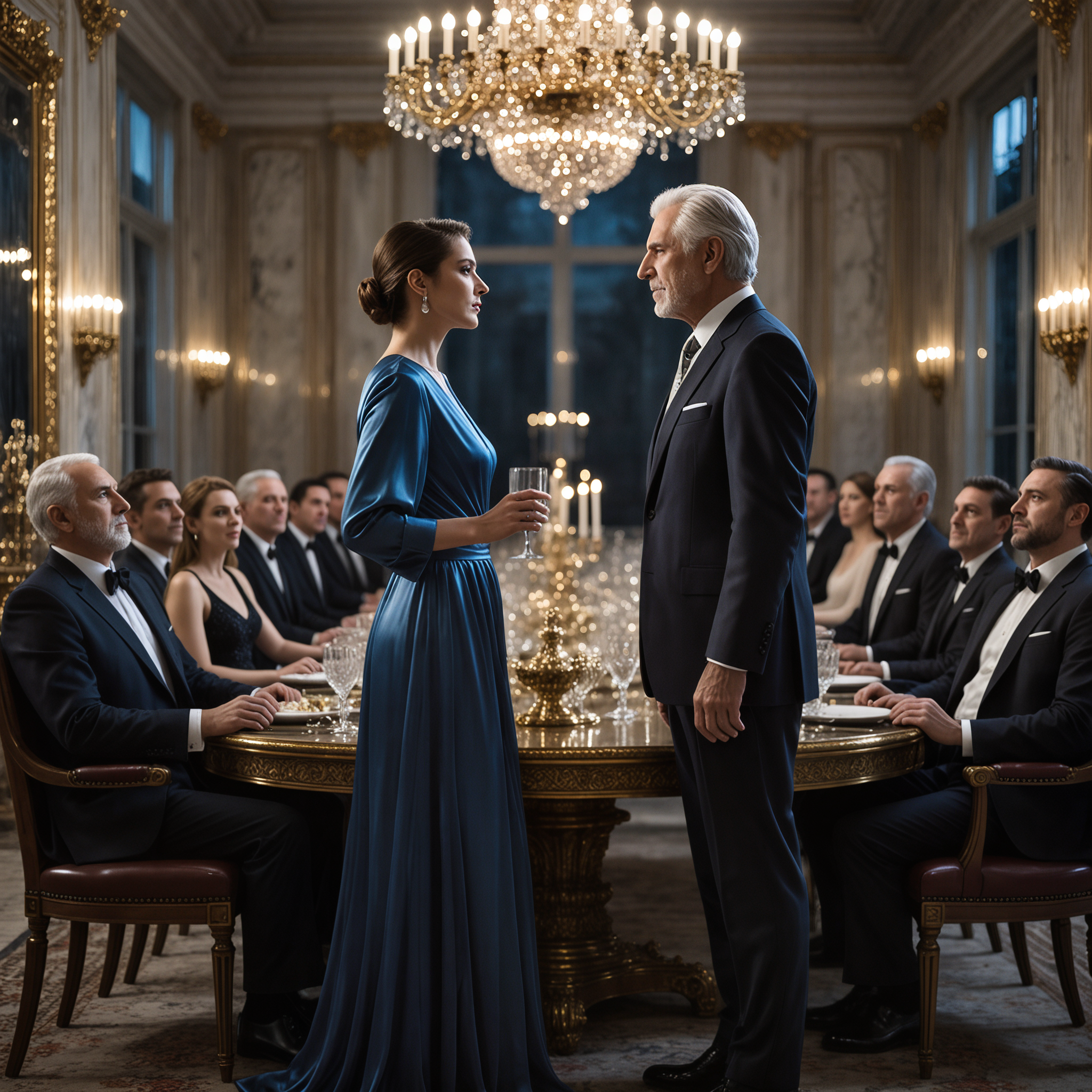 The dining room was a testament to old money and refined taste. A massive mahogany table stretched beneath another sparkling chandelier, set with gleaming silver, fine china, and crystal glasses that caught the light. Fresh flower arrangements and candles created an atmosphere of elegance and intimacy despite the room’s grand scale.